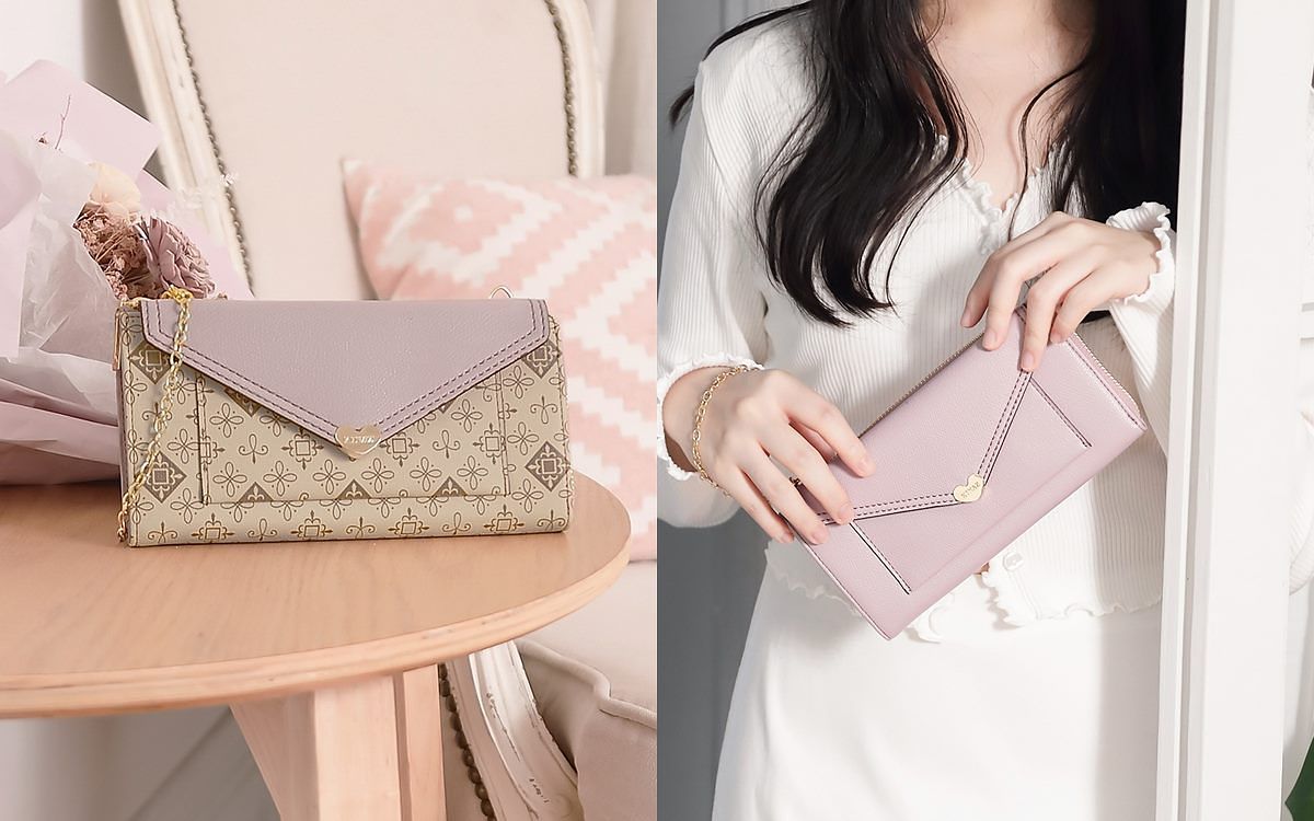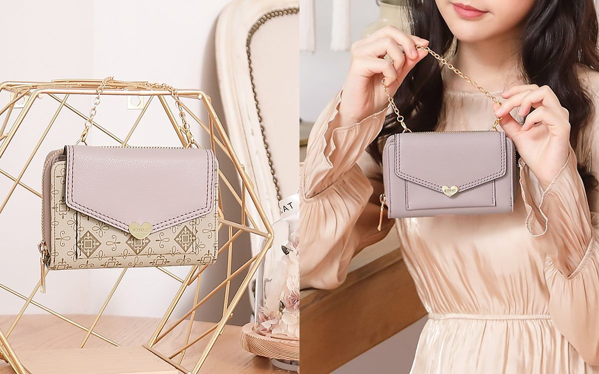 實用雙鈔票層讓鈔票可輕鬆分類,還有多層收納空間 x 貼心透明夾層設計。豐富卡片層可收納16張卡片,附可拆金燦鏈帶簡單就能變身手提/手拿包!