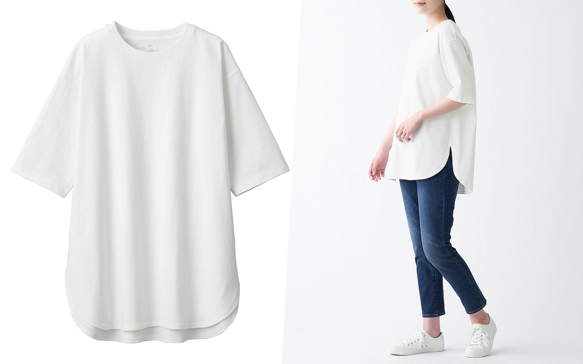 13.MUJI女有機棉粗織天竺五分袖長版衫 NT$590