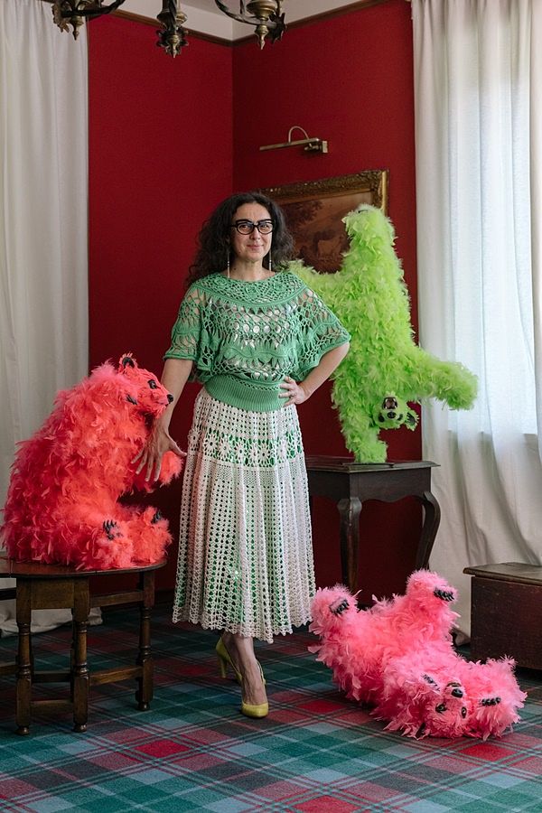 藉由改變日常物品的比例、位置或狀況,從濃縮咖啡杯到直昇機、燈罩到飛機、床墊到草地等。並以新穎方式加以使用,Paola Pivi多元又神秘的作品風格,挑戰觀眾去重新觀察和思考世界。這種做法的核心有時令人摸不著方向,又常常有趣地改造了日常生活。Pivi經常透過擬人化的手法,重建一般人所認知的特性與行為情境,創作出鮮豔粉紅色與黃色,真實大小與縮小版。創做出會練習瑜珈,還長出多色的羽毛的北極熊;在積雪山頂的斑馬;還有在數十杯卡布其諾間優雅行走的獵豹。Paola Pivi於1971年出生於義大利,現居阿拉斯加的安克拉治。她的作品涵蓋雕塑、影片、攝影、表演和裝置藝術,曾在世界知名美術館展出,包括巴黎龐畢度中心、墨爾本維多利亞美術館、倫敦泰特現代美術館、紐約MOMA PS1美術館。