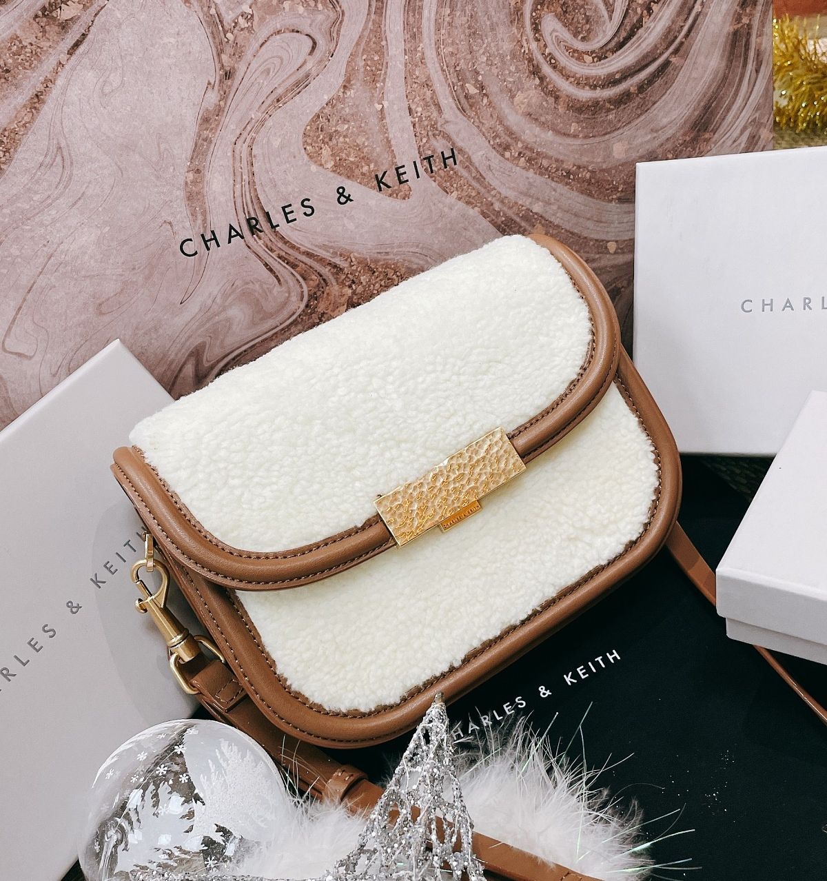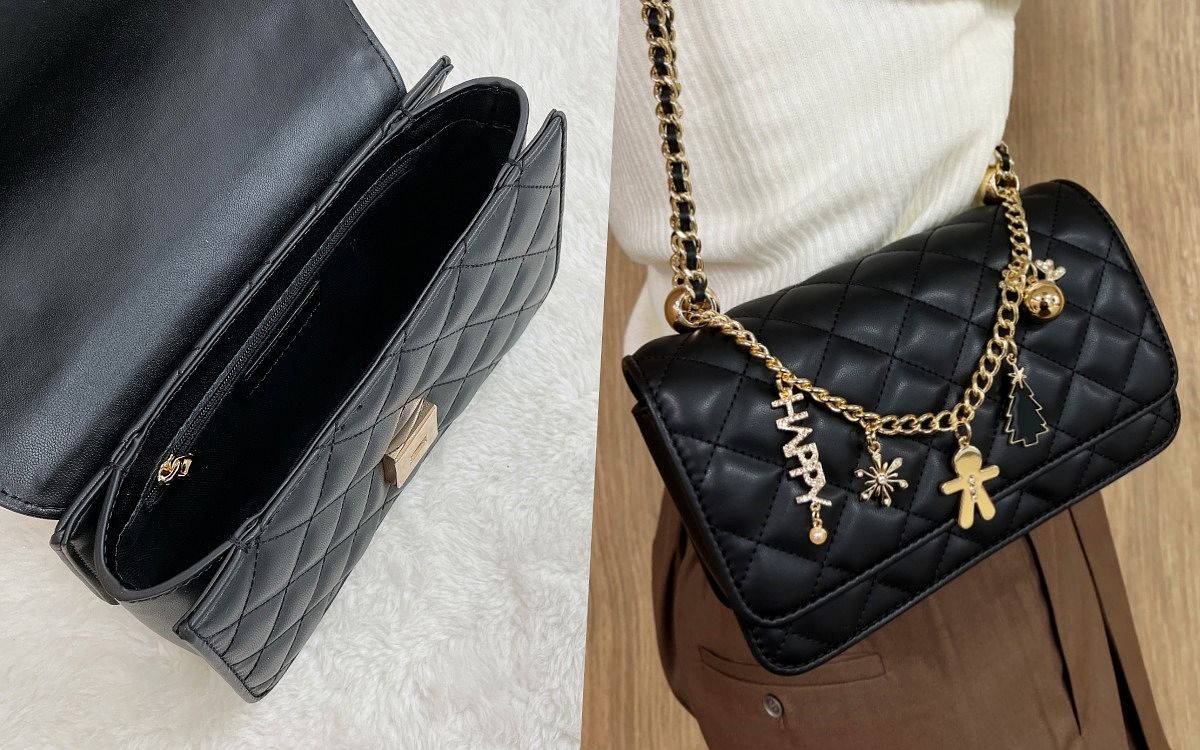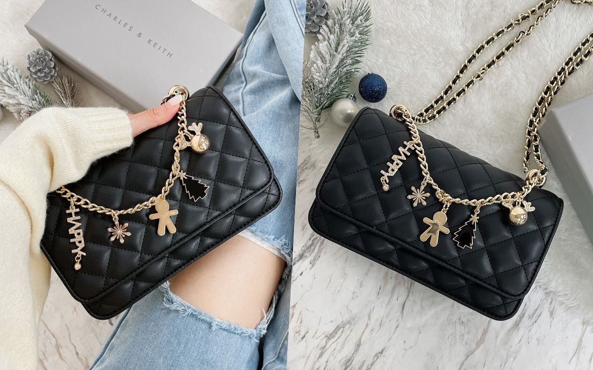 在低調的冬日造型中,一只好包能讓穿搭造型瞬間脫穎而出,CHARLES & KEITH經典菱格紋包,搭配可愛的耶誕串飾,閃亮的讓人離不開目光,優雅色調溫柔的結合,讓妳舉手投足間都展現出時髦魅力。