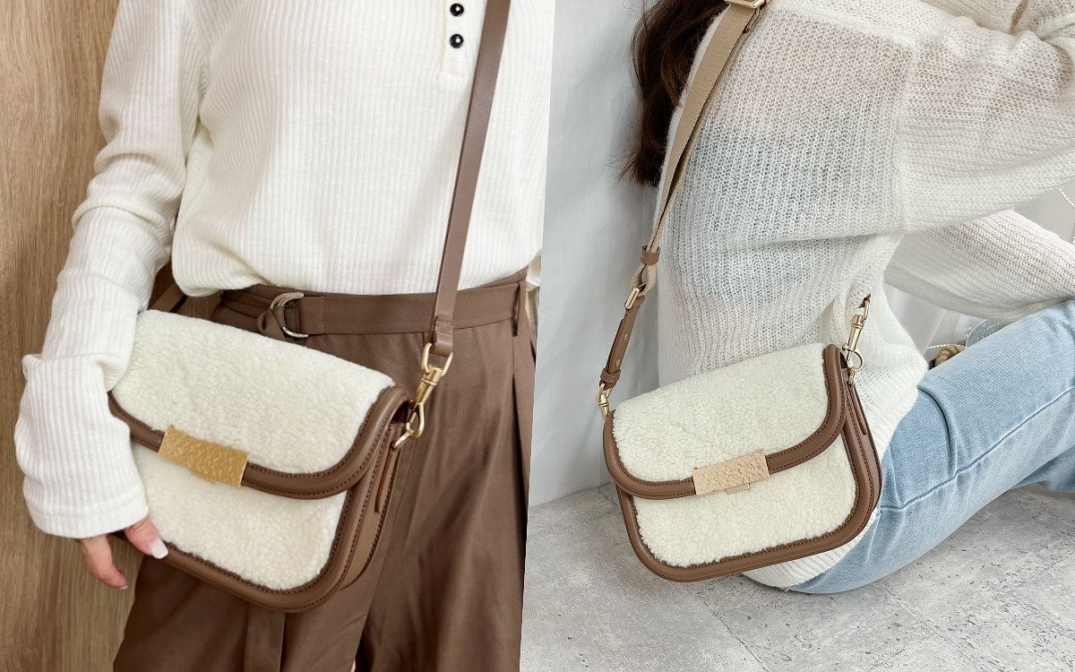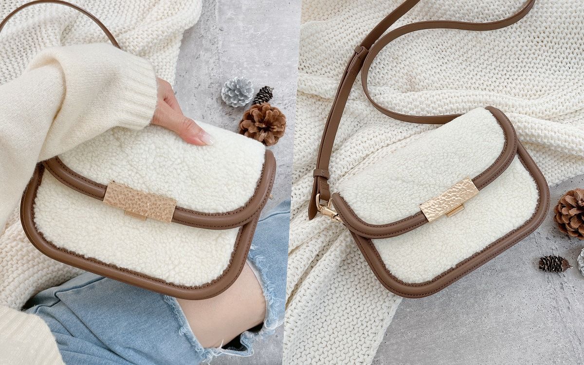 以近期超人氣的馬鞍包為輪廓,並加入金色釦飾帶出奢華感,方正外觀簡約又俐落,還兼具超大容量,手機、皮夾、耳機、鑰匙等隨身物品放進包包空間都還綽綽有餘,包款面料在冬季換上了軟綿的毛毛材質,看起來時髦又療癒!