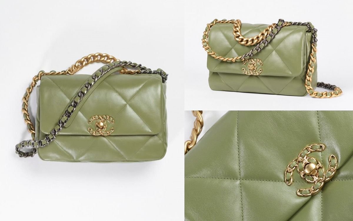 CHANEL經典人氣的19系列,有著澎潤的小羊皮打造,散發出迷人精緻的光澤感,細節以雙色粗鏈帶點綴,兼具優雅與個性俐落的設計風格,一揹上身就能展現十足的氣場!