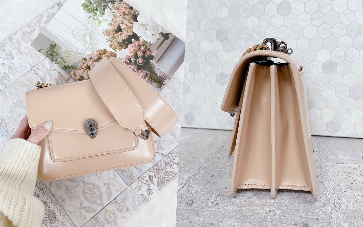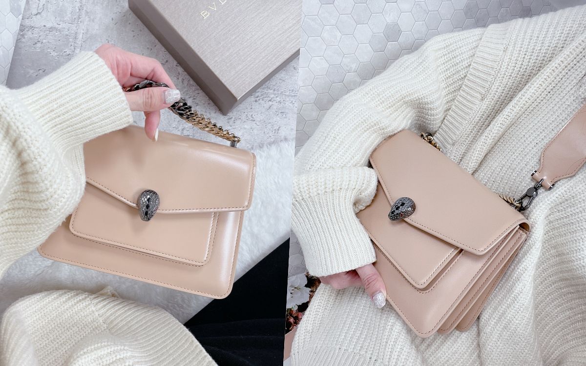 寶格麗最經典的蛇頭包!這回以柔嫩少女粉紅色帶出溫柔姿態,華美中帶著稚嫩之氣,包款內層夾袋以梯形設計容量更為能裝,寬肩揹帶則洋溢著現代氣息。