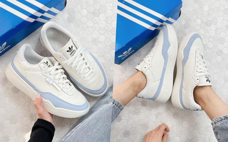 adidas Originals陸續釋出春夏全新鞋款,各種新型號讓鞋迷看了心癢癢呢~其中這款NEW HER COURT鞋款,以光滑質感的皮革拼接鞋面,搭配EVA中底搭配記憶泡棉鞋墊,一上腳就感受到超柔軟腳感,局部點綴的寶寶藍拼接米白色,替穿搭增添亮點!