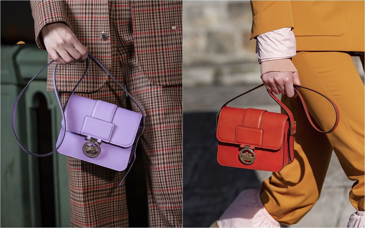 本季重點明星包款 Box-Trot 系列,它的名稱由來不僅是因包款本身的獨特風格,亦與 Longchamp 及其與馬術世界的淵源有深厚關係。Box 是寬敞的方形馬棚,如同挺立的包身形狀,而 Trot 則是一種介於行走與奔馳之間的步態,於馬術表演時馬匹隨著音樂節奏小跑的動作。Box-Trot以光滑小牛皮材質打造手感堅實、圓潤且硬挺的設計,表現出 Longchamp對於傳統手工藝的知識,彰顯其堅定的現代思維;而它的形狀以及滑順觸感,更是象徵著自由奔放的巴黎靈魂,蓄勢待發。翻蓋上飾有精工細作的淡金色金屬徽章扣,並以品牌經典奔馬和騎手圖樣為特色,恰當的比喻著Longchamp 巴黎閨秀的獨立與能量。Box-Trot 共有五種顏色,包含經典黑、干邑色、大膽的亮橘色以及時下流行的丁香紫和柏木色,以及三種尺寸,附有兩條可調節肩背帶的中型斜背包,一個小一點附有一條可調節式背帶的包款,以及帶提把的迷你款式,附有可拆式肩背帶。它簡約但不失精緻,簡單卻優雅 ― 這正是所謂的法式時尚。