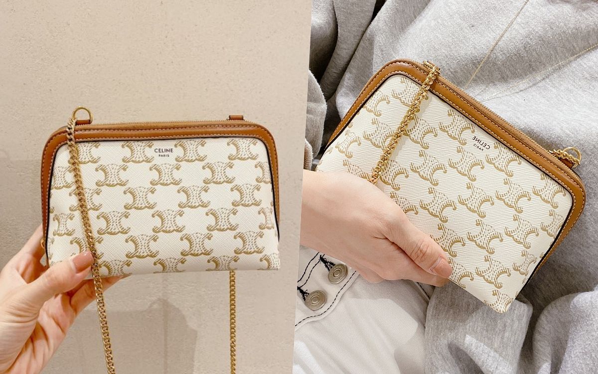 CELINE TRIOMPHE老花已坐穩新經典寶座的品牌象徵!這顆造型精巧的奶油色老花貝殼包,雖然隸屬於小皮件系列,包款尺寸卻比想像更能裝,金屬肩揹鏈帶更讓實用性再加乘,肩揹上身復古又充滿質感。