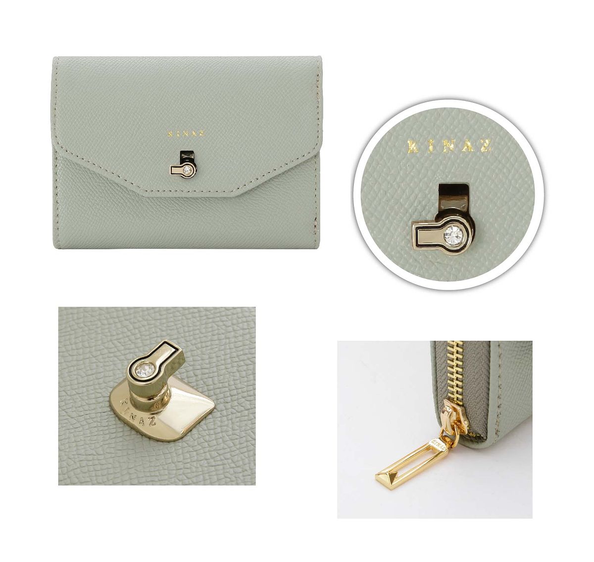 KINAZ 真皮水鑽旋轉鎖拉鍊袋三折短夾