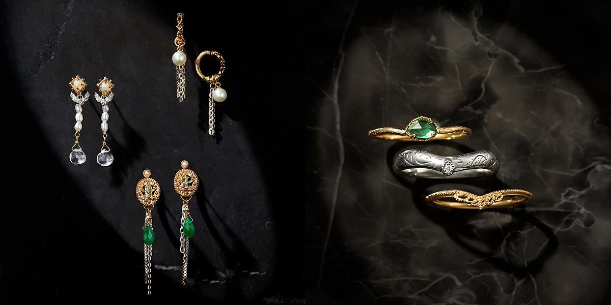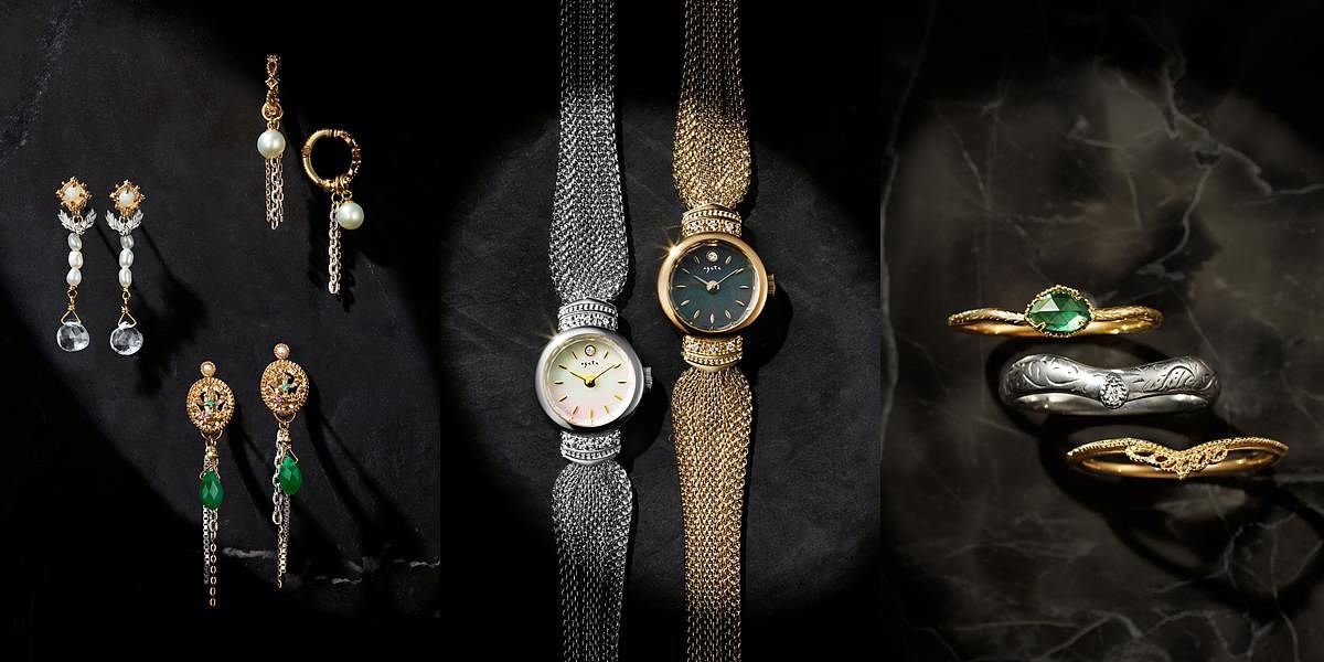 除錶款與玫瑰式切割鑽石,本次冬季限定系列更同步推出風格各異之三款耳飾限定套組與橄欖戒指套組。匠心運用各式寶石與金屬如agete首創10K金、鑽石、珍珠、祖母綠、綠玉隨、水晶與蛋白石等珍稀材質,共同創造奢華魅力且古典的蘊味(凡購入冬季限定系列,即贈冬季限定包裝與珠寶收納盒)。