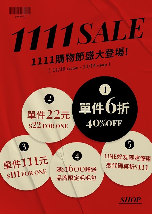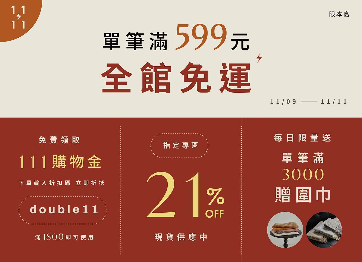 1.雙11瘋搶全館5折起(門市同享優惠)