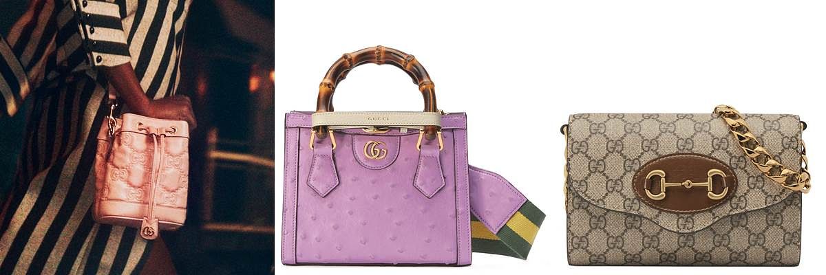圖片來源:GUCCI 粉色水桶包$65,500/紫色手提包$281,600/老花包$75,800