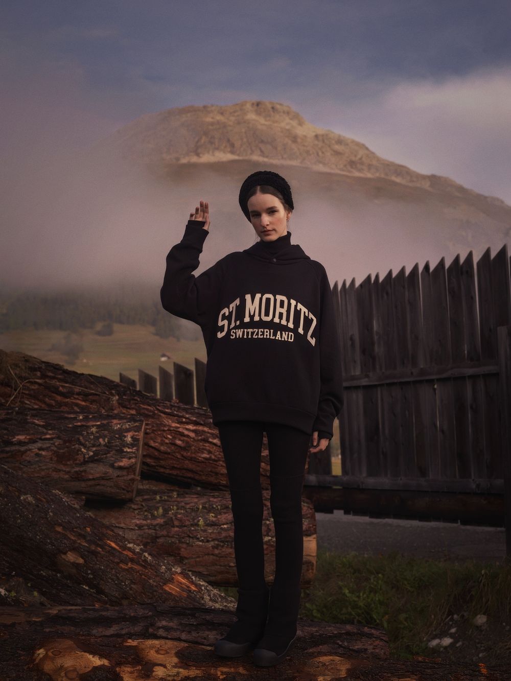 該膠囊系列攜手瑞士聖莫里茨(St. Moritz)品牌合作,飾以瑞士學院風印花與刺繡元素,綴以 Bally 百年珍藏檔案館的標誌性圖案,凸顯對現代摩登的探尋。飾有羊毛翻皮的丹寧單品與做工精緻的西部絎縫外套傳遞了創意總監 Rhuigi 多元趣味的設計理念。