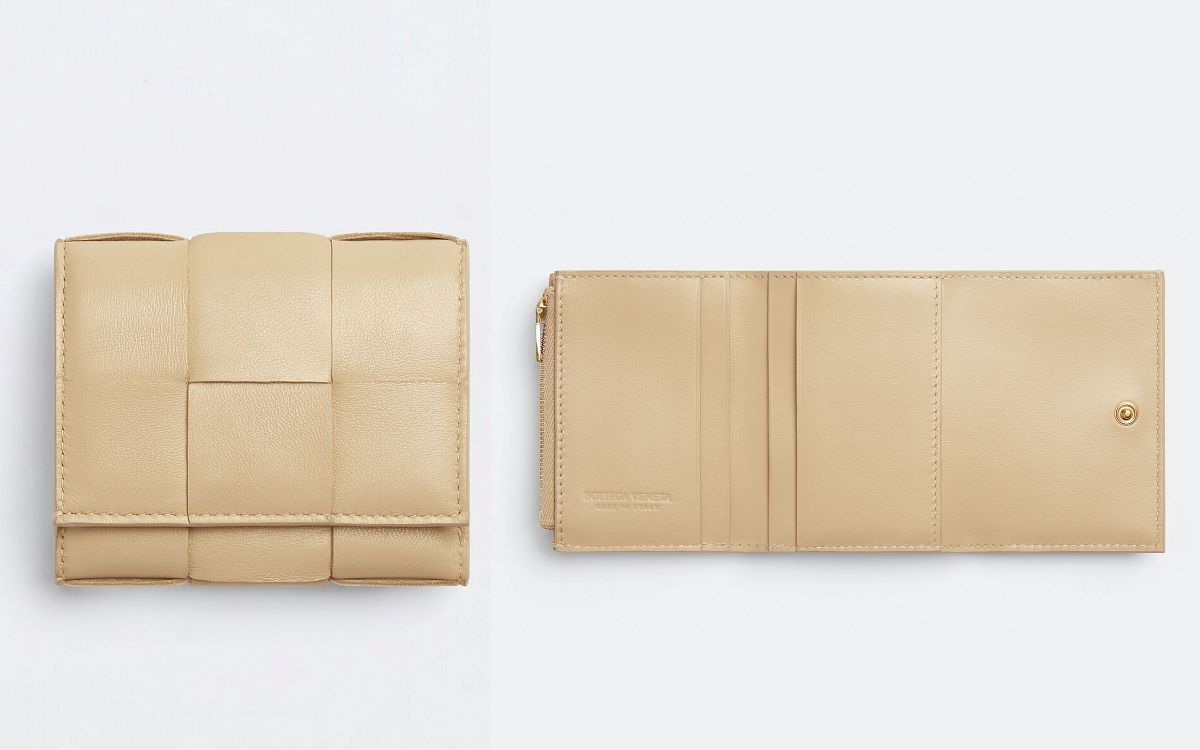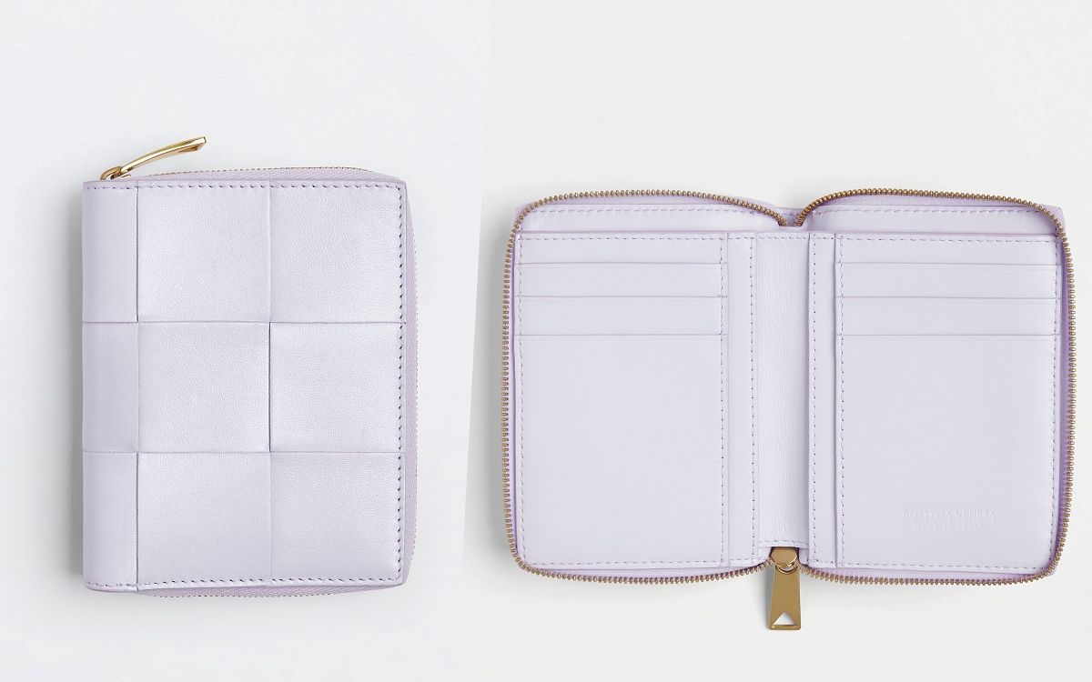BV的寬版皮革編織格紋的包款,在時下年輕族群中大受喜愛,幾何現代的設計搭配簡約的輪廓,無論任何風格的人都能零失誤駕馭,相同設計的錢包搭配粉嫩淡雅的好感色系,實在很難抗拒~