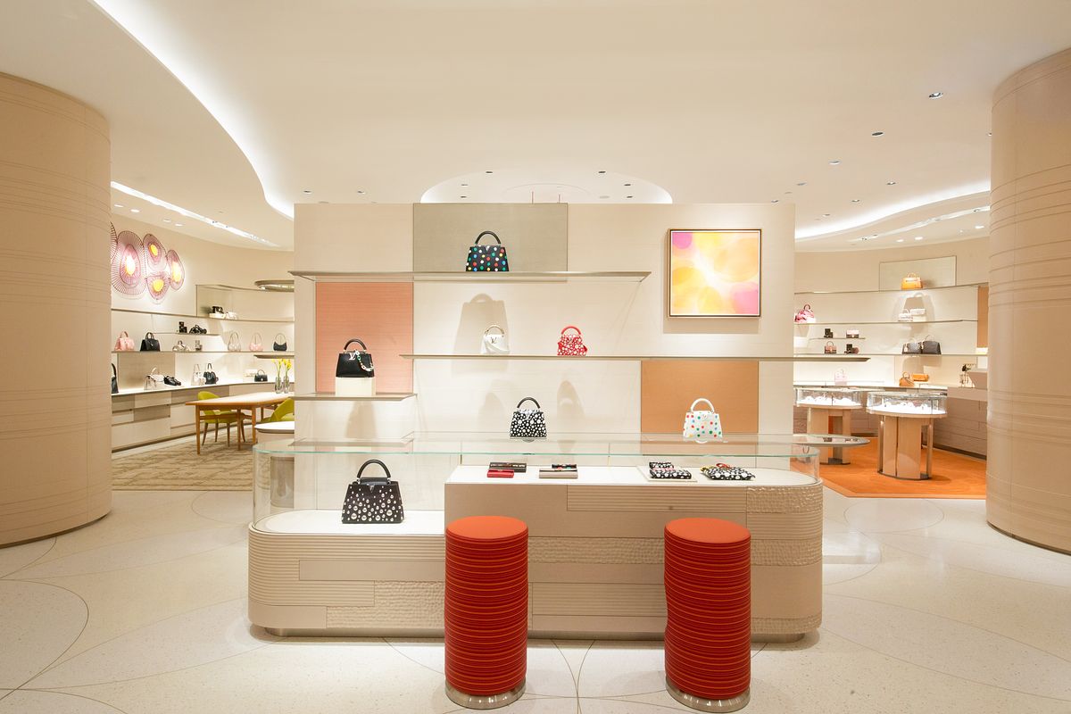路易威登全新台北 101 旗艦店旨在展示每一件藝術品、每一件復古作品以及設計師傢俱,宛如身處於清幽雅致的藝文空間。整座店面的設計呈現弧形維度,猶如致敬路易威登經典的花朵圖案,創造舒適流通的空間與優雅的能量。設計師悉心挑選材料與規畫優美空間,每個沙龍空間都講述一段故事,一段穿越不同地方的旅程,一個通往路易威登世界的秘境。路易威登 X 草間彌生聯名系利全新上市、「首賣」商品為慶祝此次台北 101 旗艦店盛大開幕,中庭挑高區與男裝區彩繪上期間限定黃色迷幻波點藝術裝置,隆重呈獻與日本藝術家 Yayoi Kusama 草間彌生聯名合作系列。