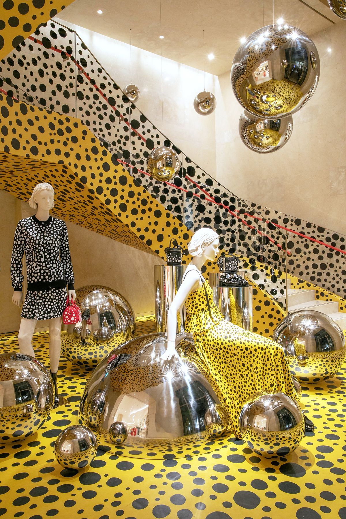 首波上市系列包含彩繪圓點 Painted Dots、鏡面圓球 Metal Dots、無限圓點 Infinity Dots與迷幻花朵 Psychedelic Flower,渲染於女士與男士時裝、皮件、飾品配件和香水,將草間彌生的獨特筆觸圓點和路易威登的 Monogram 圖案碰撞出趣味十足的火花。