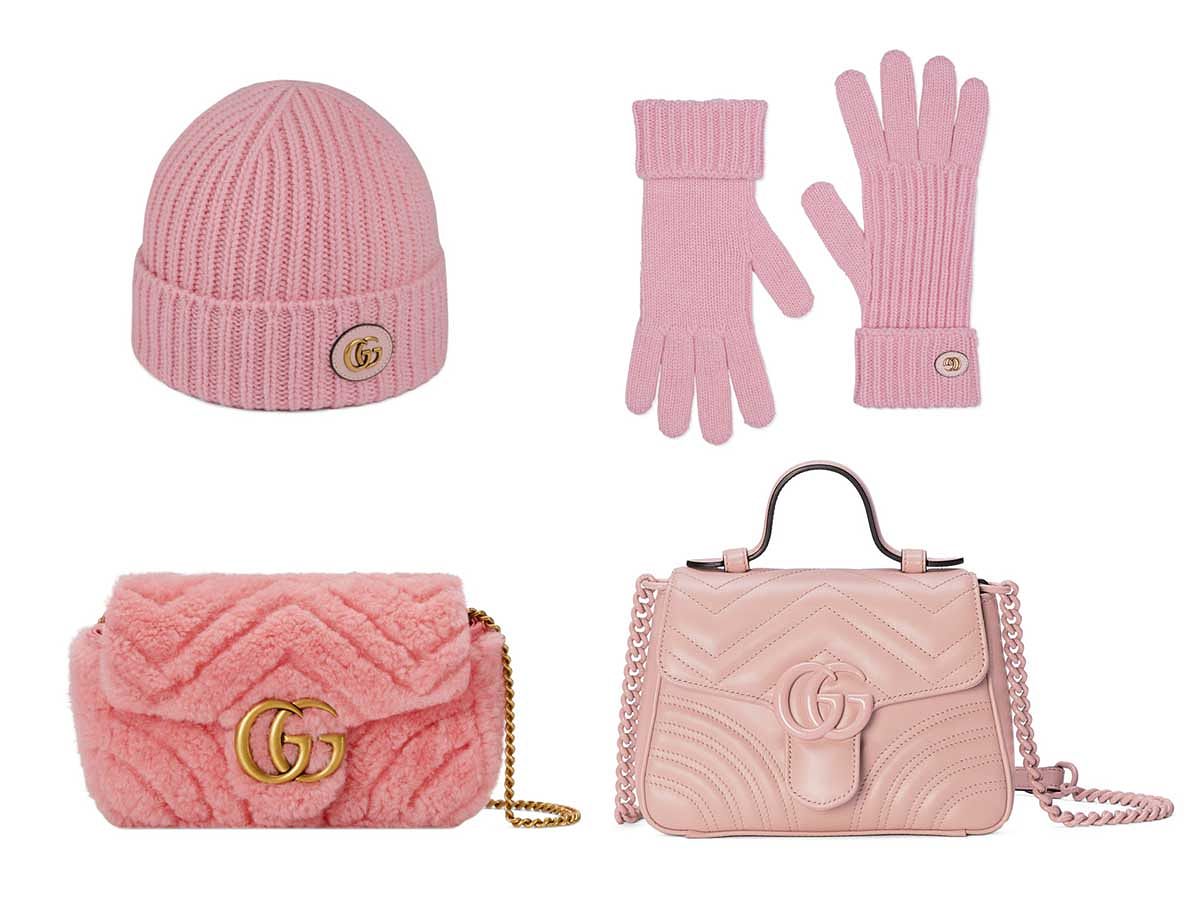 Gucci假日禮讚系列也推出一系列令人少女心大噴發的粉紅夢幻逸品,不論是冬季保暖實搭的GG LOGO粉色毛帽、手套或圍巾,還是毛茸茸可愛到讓人想尖叫的粉紅色迷你Marmont羊毛肩背包,每一項精選粉色推薦單品讓你在年末跟上最潮粉紅芭比旋風,每天輕鬆展現如少女般青春活力的好感穿搭。