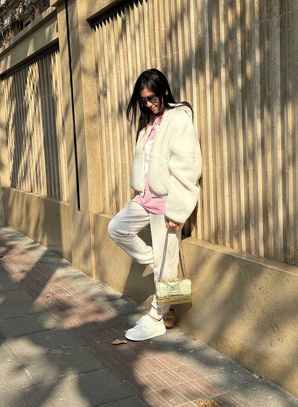 紛呈驚喜,探尋美妙旅程。林熙蕾手拿Fleming 軟皮單肩包,以金色為主色調,彷若閃耀豔陽,與日常穿搭相互輝映;方志友身穿黑色翻領洋裝,搭配Eleanor 小號天鵝絨包,金色調Logo 和鏈帶為深邃黑調增添亮點,盡享悠然度假時光;程予希手提T Monogram 迷你壓花金屬托特包,金屬美感與流光緞面相映成趣,展現姿意灑脫街頭態度;陳姸霏身穿Logo 蕾絲T 恤洋裝,搭Eleanor 小號天鵝絨包,絲滑天鵝絨面在暖陽中映現迷人光澤,展現獨有的清新溫柔。