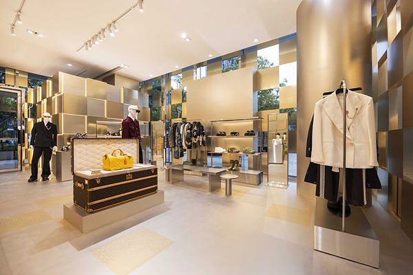 全新男裝快閃店共有兩區,展出2024春夏系列服飾、包款、配件、鞋履等全系列商品。店面設計靈感回溯品牌創立於1888年標誌性的Damier棋盤格,鍍金棋盤格成為外牆主視覺,呼應本季太陽(The Sun)的主題,宛如一顆萬丈光芒的金色太陽照耀信義區。巨大的LVERS發光裝置矗立於遠百信義門口,Louis Vuitton字首化作全新的LVERS標誌,代表一種新文化的信仰,象徵全球多元背景共冶一爐的文化;由籃球傳奇詹皇Lebron James所演繹的全新形象廣告亦播放於商場數位廣告看板。