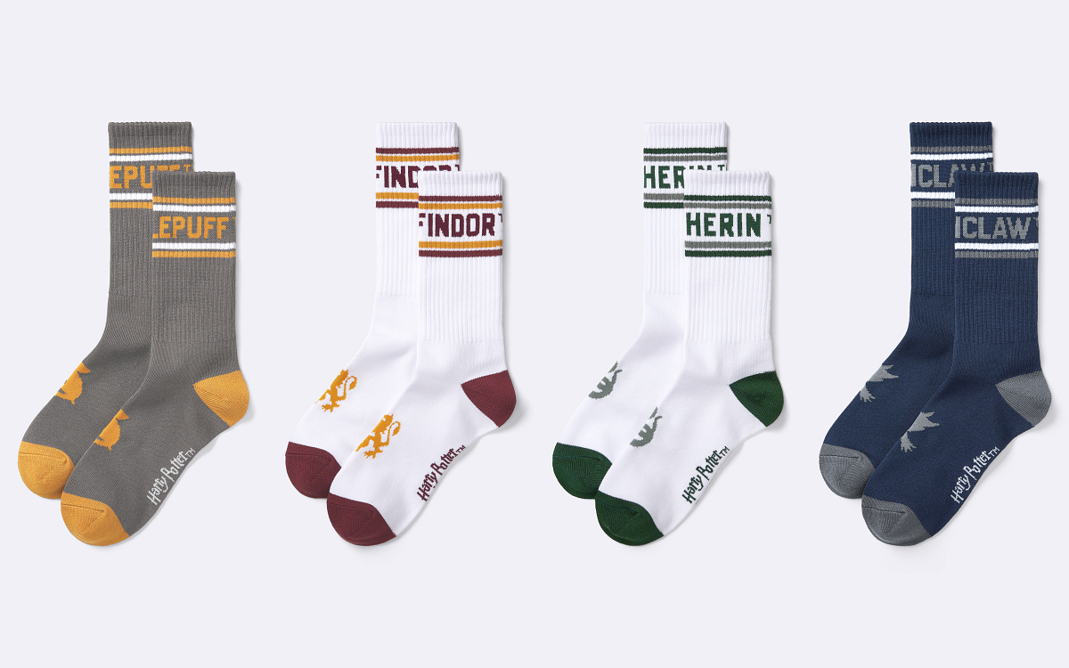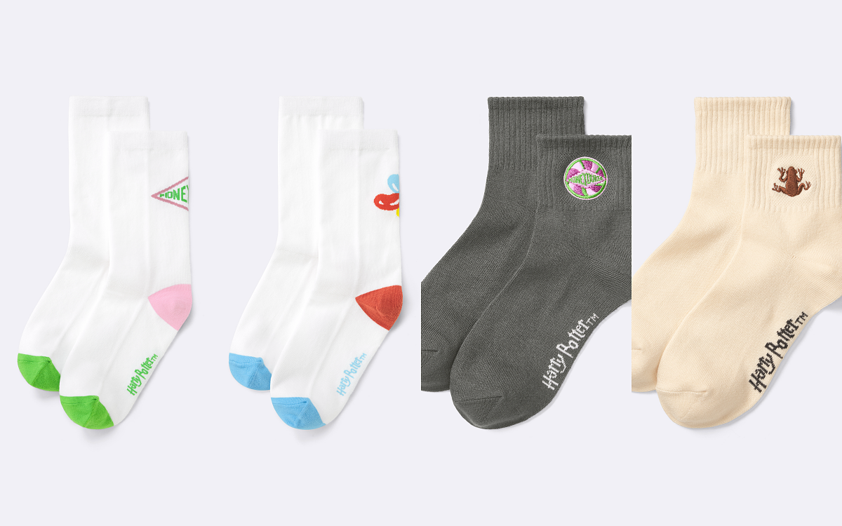 這次 GU x 哈利波特聯名系列以「把魔法穿上身」為概念,融合日系簡約風格與哈利波特的奇幻元素,推出多款 T 恤、居家服、襪子及配件等單品。四大學院:葛來分多、史萊哲林、雷文克勞與赫夫帕夫一一的代表色與徽章設計都被巧妙地融入細節之中,低調卻不失個性。而最讓粉絲驚喜的是,系列中還有以蜂蜜公爵糖果店為靈感的可愛圖樣,無論是印有巧克力蛙、糖果包裝或是魔法甜點的設計,都讓人看了忍不住想全部打包帶回家。