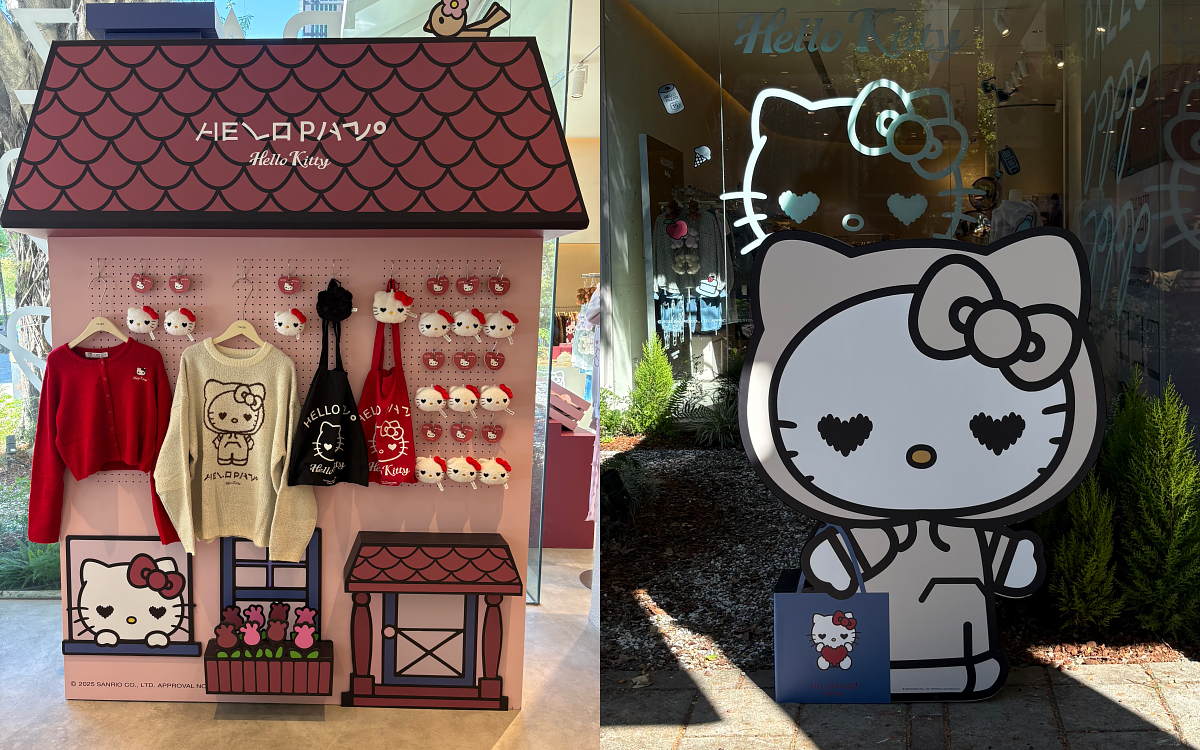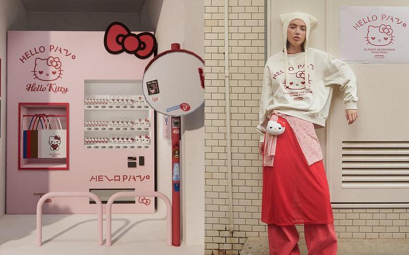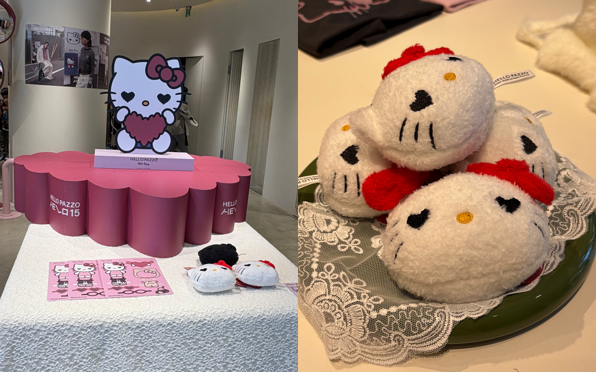 為慶祝這次合作,PAZZO 特別於信義店打造全台唯一「愛心眼 HELLO KITTY」限定場景。以粉嫩復古街頭為靈感,結合販賣機裝置、凸面鏡拍照點與電線桿海報等細節,每個轉角都藏著滿滿少女心,營造走進記憶畫面的沉浸式打卡空間。此外,現場還展出本次聯名專屬打造,近100公分高的 HELLO KITTY FRP 巨型公仔。以立體雕塑呈現 HELLO KITTY 身穿聯名帽TEE的全新造型,不僅讓粉絲能與這隻經典HELLO KITTY近距離合影,重溫童年美好時光,更成為現場最吸睛、絕對不可錯過的必拍焦點!