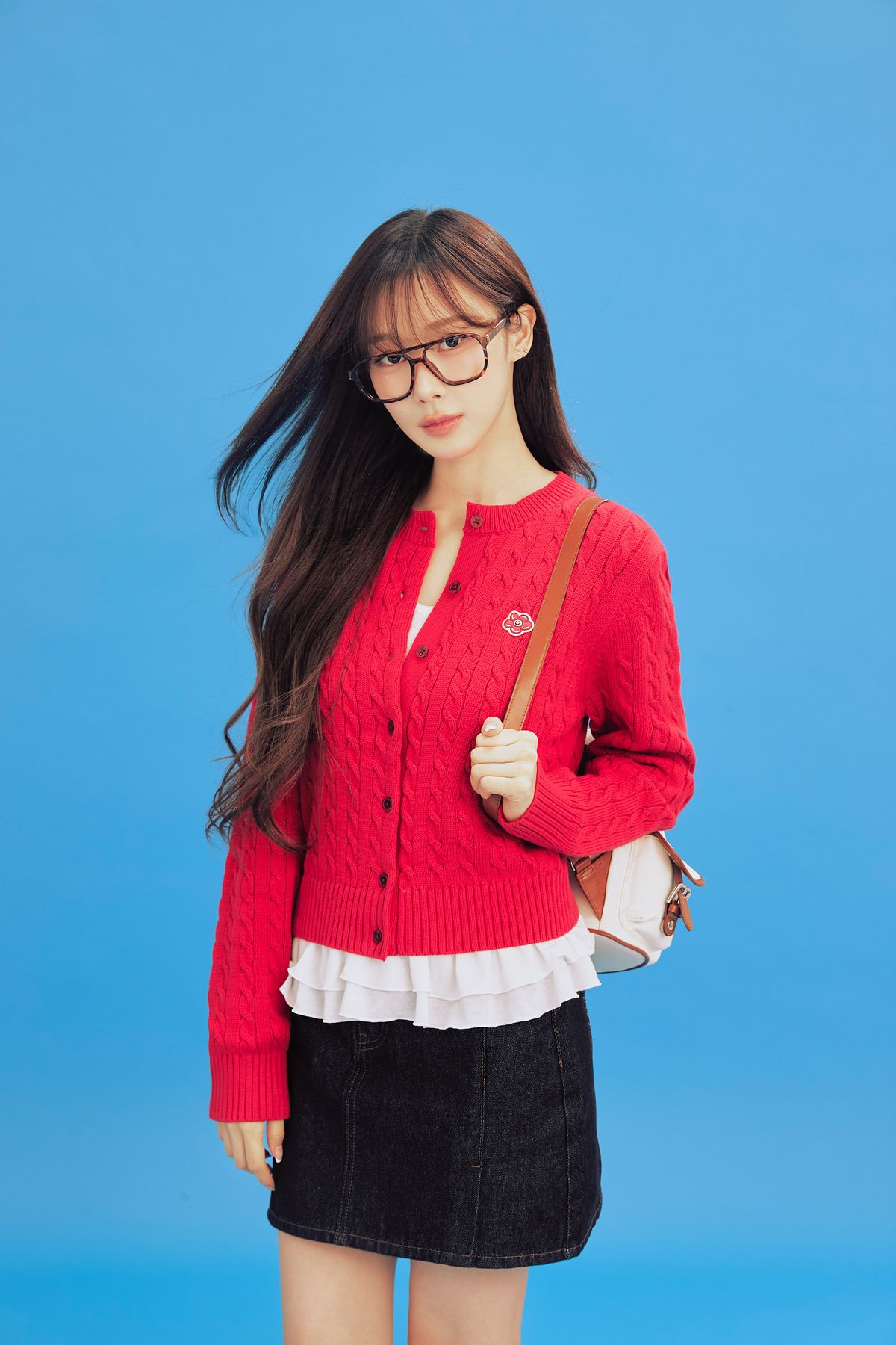 另一套則是大膽選用女款圓領麻花針織外套,極致吸睛的亮紅色透過麻花織紋增添質感,內搭層次感白襯衫,既有春日的活潑,又不失高級氣場。