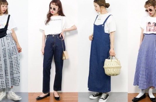 如果妳的衣櫃裡有細肩帶的洋裝、連身褲,不要猶豫!快將它們拿出來瘋狂搭配白色T恤吧~除了直接外罩連身裙外,還可以再內搭丹寧褲增加層次,立刻晉升穿搭達人的行列!