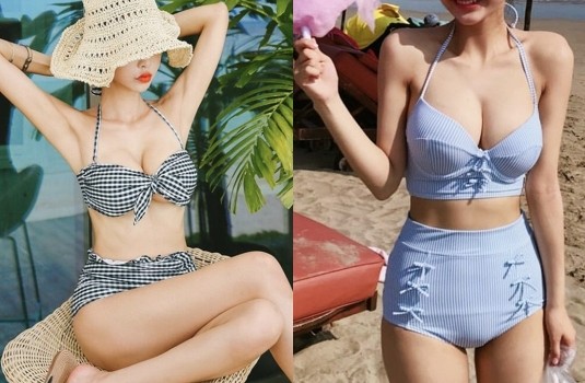 除了連身款式,復古高腰泳裝也能立即收斂腹部的肉肉,解決腰、腹部沒有足夠肌肉,鬆垮的問題唷!