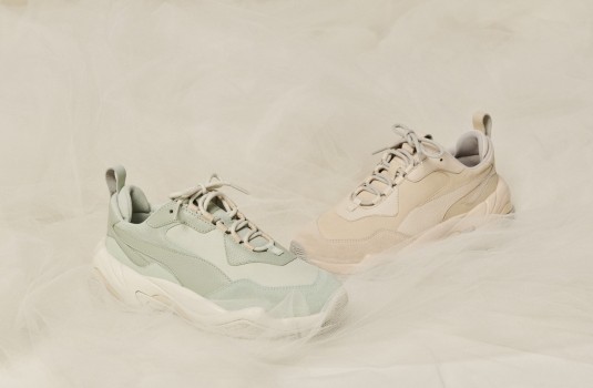 今年年初一推出,人氣指數就急速竄升的復刻老爹鞋,PUMA「Thunder Spectra」,在各大平台或時尚街拍出現率都超高!最近又再度推出超絕美的「Thunder Desert」初戀色系!共有棉花糖粉及薄荷糖綠兩色,柔美的霧色調跳脫常規的色塊拼接設計,讓人一眼就愛上!
