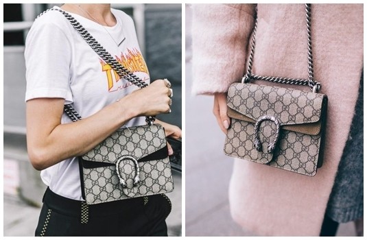 這款包就是網上熱烈討論、俗稱的「酒神包」,也幾乎是每位時尚人士都擁有的GUCCI包款,它方正、帶女人韻味的包型,搭配獨特的雙虎頭釦及粗鍊條,呈顯出復古、低調華麗的設計風格,真的非常美麗又迷人~