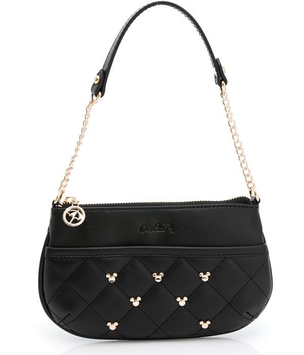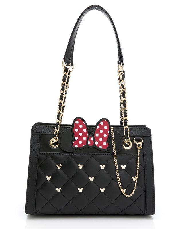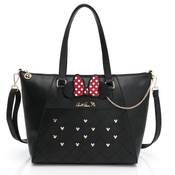 「Arnold Palmer迪士尼米妮Gorgeous系列」以似真皮面感合成皮革搭配優雅菱格紋繡線,將精美萌趣的米奇頭造型鉚釘穿插其中,低調中彰顯時髦主義,更增添幾分少女俏皮感!迪士尼米妮Gorgeous系列包款此回以經典米妮造型『大紅色圓點蝴蝶結』為設計重點,推出適合小資女孩日常著用的後背包與托特包、以及適合個性甜美女孩外出休閒穿搭的腰包、肩背包、與貝殼包,並且巧妙將米妮化身為圓鏡掛飾隱身於包包內,是妳隨時補妝整理儀容的秘密武器,當然,如果你是喜歡夢幻可愛的米妮蝴蝶結,可將造型圓鏡插入包包的插袋、低調的女孩們可以將米尼造型圓鏡收起來,展現個性鉚釘潮流LOOK!