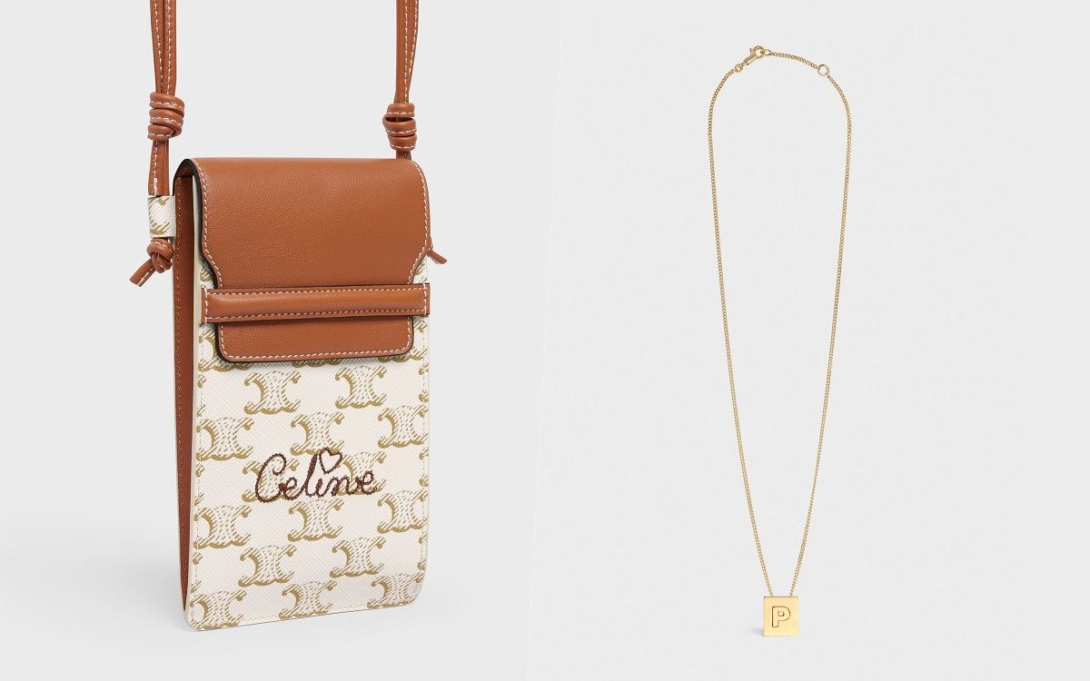 以CELINE TRIOMPHE CANVAS經典帆布印花系列為基礎,將獨特的CELINE心型手工刺繡LOGO運用於手機袋上,奶油色搭配草寫字體每到心都要被融化了,字體中的愛心還能偷偷傳達愛意呢~想要送對方更專屬的禮物的話,推薦CENIE的字母項鍊,可選擇對方或自己的代表字母,讓配件也別具意義!