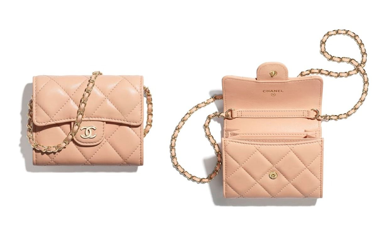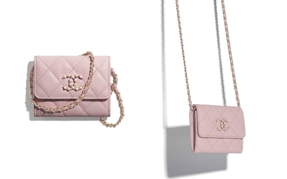 以香奈兒經典皮夾為靈感,將原本的短夾、中夾單品作為迷你小包的主體,並加入鏈帶設計,讓小皮件變身為輕巧可愛的外出小包,除了經典皮革金屬鏈帶,還有進化版珍珠款,優雅又精緻的夢幻外觀,加上三萬多起即可買到的入門價格,成為小香粉們相爭收藏的新寵兒!