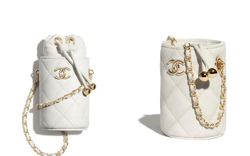 小巧別緻的水桶包身與珍珠鍊帶詮釋絕美風華,專屬香奈兒的獨特個性不言而喻。