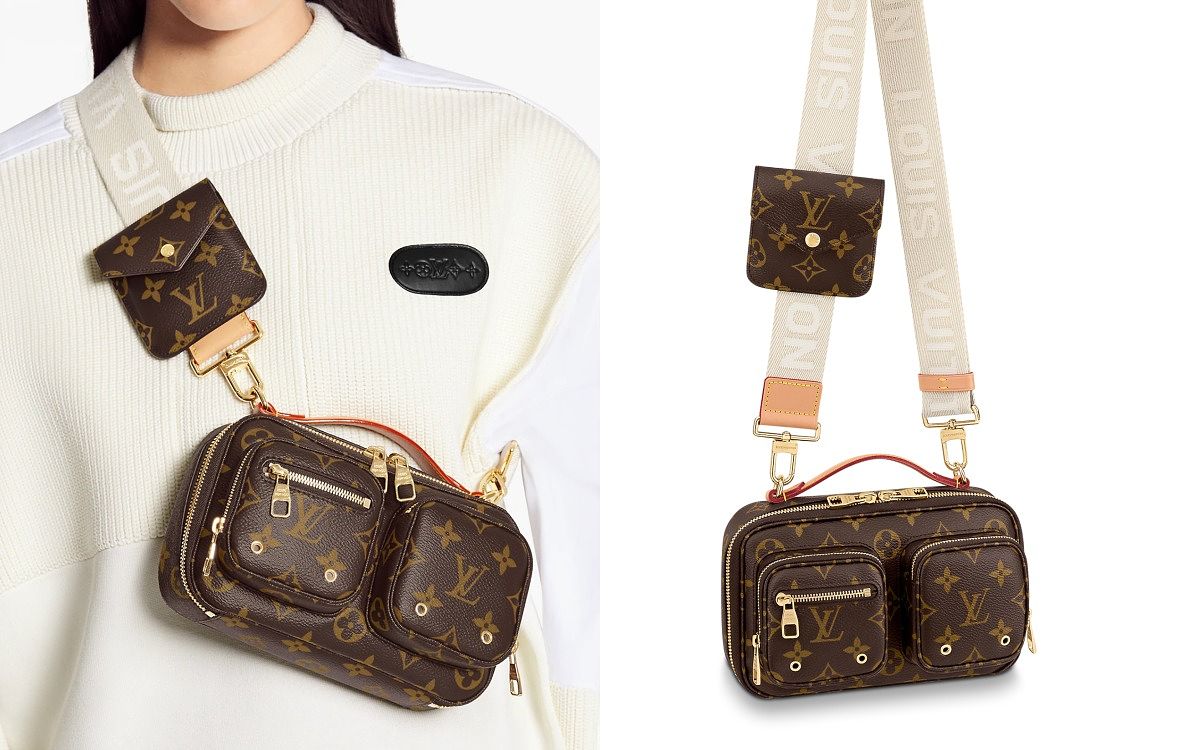 UTILITY老花系列推薦給偏愛休閒風格穿搭的女孩,容量大又實用的斜背包配有多個外層拉鏈袋,並在頂端點綴小牛皮提把,經典中又帶有設計感,背帶上貼心附上一個小收納包,可放置常用的卡片或耳機,這咖簡直太方便了!