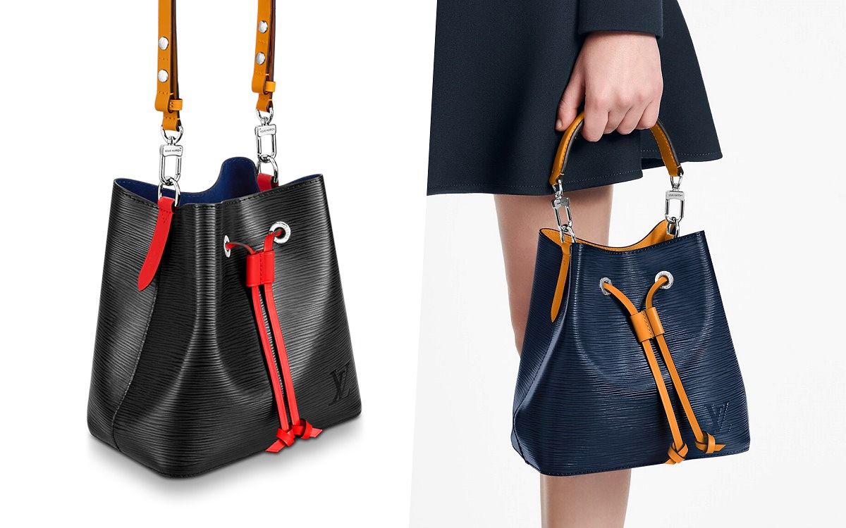 運用最經典的水桶包型,將老花帆布改為Epi皮革製作,背帶、抽繩處皆以活潑的撞色色彩點綴,展現出清新時尚的風格, 除了有可調式背帶外,還附上頂端提把,日常使用更無限制!