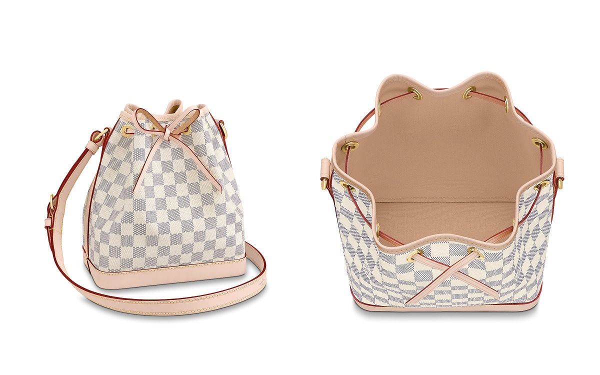 經典Noé BB水桶包,除了經典老花款,還有這款迷人的奶油色Damier Azur帆布款,保留了原本用於放置香檳的設計,包括袋形、寬敞間隔及束繩開合等細節,耐看又擁有超大容量,四萬多的入門價推薦給小資女孩們!