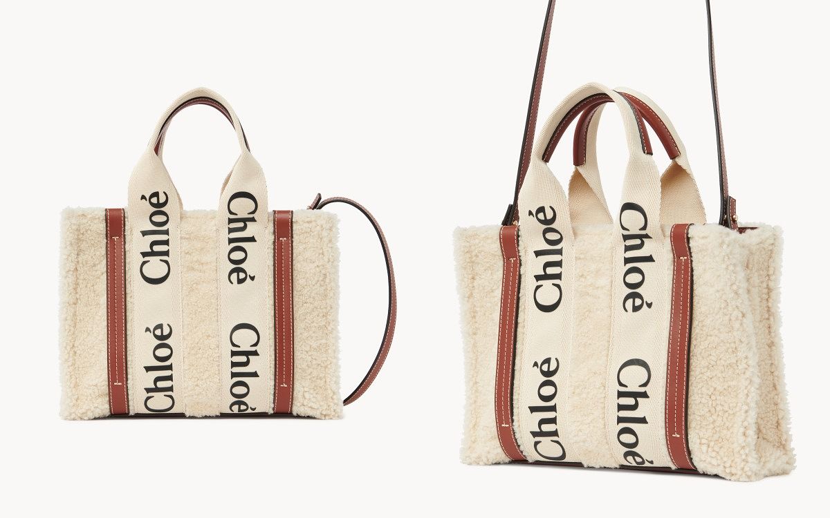Chloé Woody咖啡色肩帶款小型羊毛托特包,NT$54,800