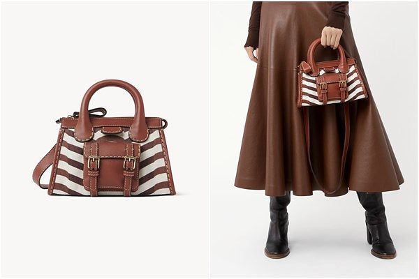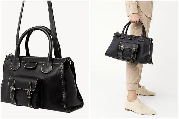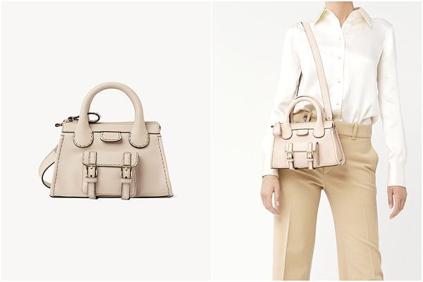 全新推出的Edith Bag保留了許多經典設計:精心製作的水牛皮革梯形包身飾以對比鮮明的縫線,搭配圓形手柄勾勒的頂部開口和中央拉鍊,再以前袋及壓印Chloé Logo的皮革標籤作點綴。除了原本的中型款式,另增添迷你尺寸及大型包款。