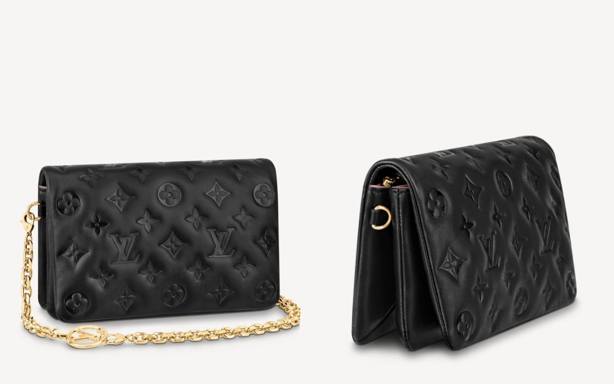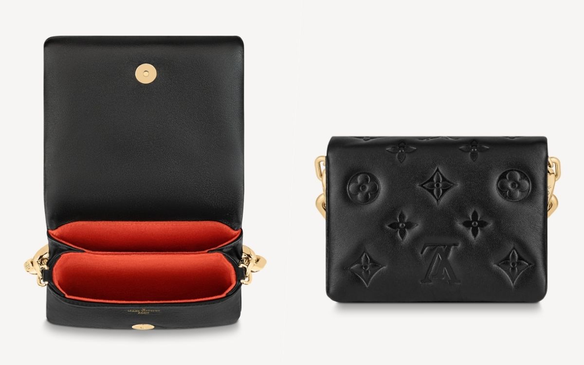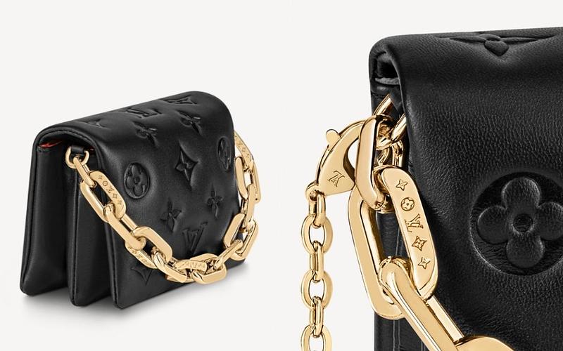 另外Pochette Coussin也是系列手袋之中詢問度超高的款式,一樣以柔軟小羊皮製造,滿版Monogram壓花圖案雋永洗鍊,更為精巧可愛的包身輪廓日常使用十分合宜,可拆式鏈帶裝飾了Louis Vuitton吊飾,包款攜帶方式也非常多元,經典又耐看、同時容量與夾層配置通通滿分。