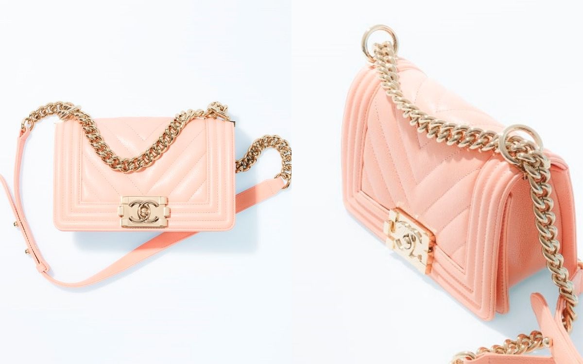 香奈兒經典神級BOY CHANEL包,在近期將全面回歸,最新夢幻橘粉色也有這款經典包的蹤影,選用最具人氣的小型尺寸,甜美的顏色與粗獷鏈帶相互呼應,打造出耐看又優雅的手袋。