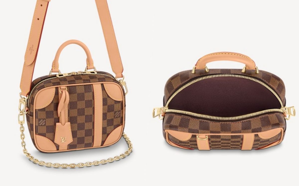 Valisette Souple BB包款採用質感耐用的Damier Ebene帆布製作,同時以皮革包邊、讓整體輪廓更為細緻,LV鑰匙套凸顯品牌以行李箱起家的細膩元素,內層酒紅色襯裡時髦又擁有亮點。