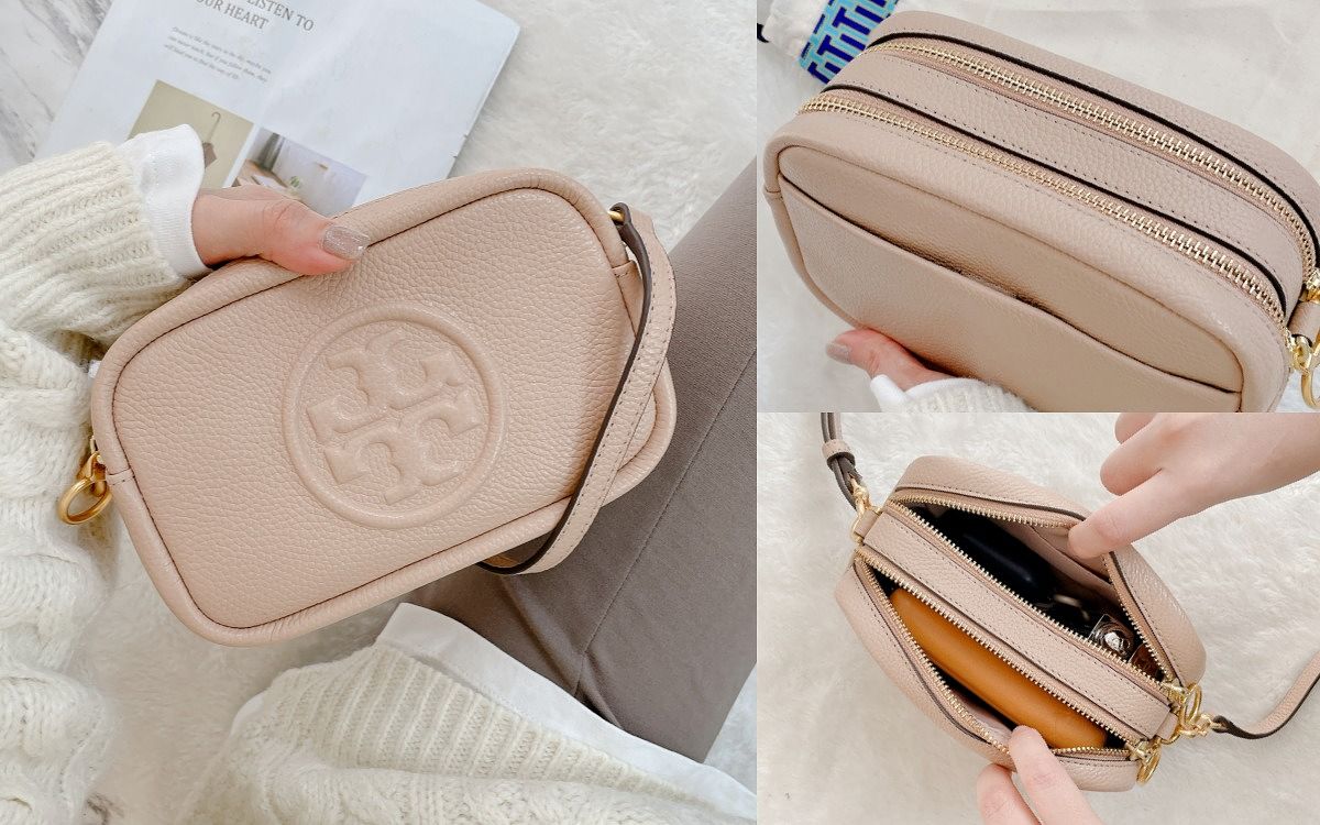 這款Tory Burch真的很值得入手!!櫃上最受歡迎的PerryBombé迷你包,以細緻質感的荔枝紋皮革製成,正面帶有浮雕雙"T"標誌,經典又耐看的設計買了絕對不會後悔,雖說是迷你包,但大家最在意的大螢幕手機及短夾都放得下喔,加上略帶彈性的皮革性質,在拿取物品時更輕鬆沒阻礙!