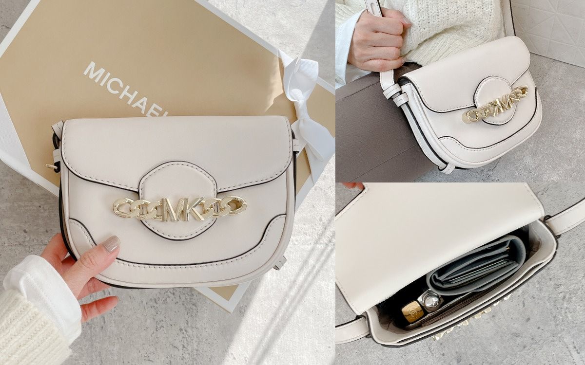 Michael Kors最新主打手袋HALLY馬鞍包,擁有流暢的包身線條和圓潤的底部弧度,散發出優雅復古的氣息,正面點綴MK CHAIN五金設計,帶來低調奢華質感,小巧的尺寸可以應付日常的基本容量需求,又能襯托出高挑比例!