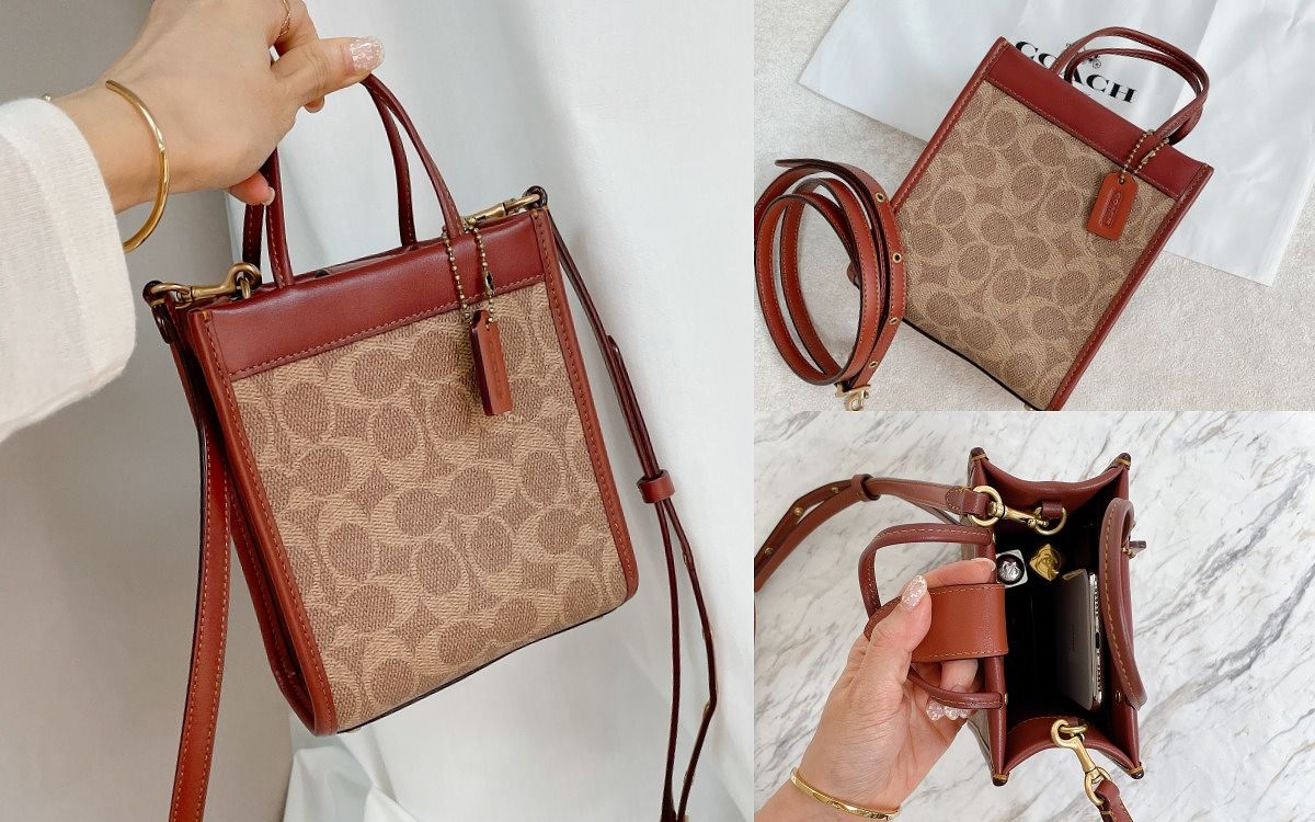 COACH也加入迷你托特包的戰場啦!選用超人氣老花圖騰為設計主軸,並以經典的CASHIN CARRY為設計靈感,鐵粉絕對不能錯過這款划算又耐看的雋永手袋,方正設計讓包包比想像中更能裝,手機、短夾都能放入,日常使用剛剛好!