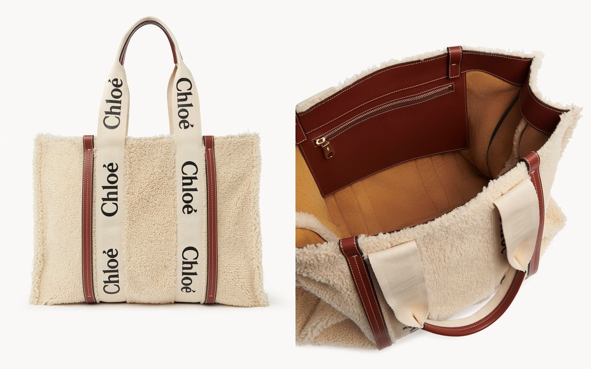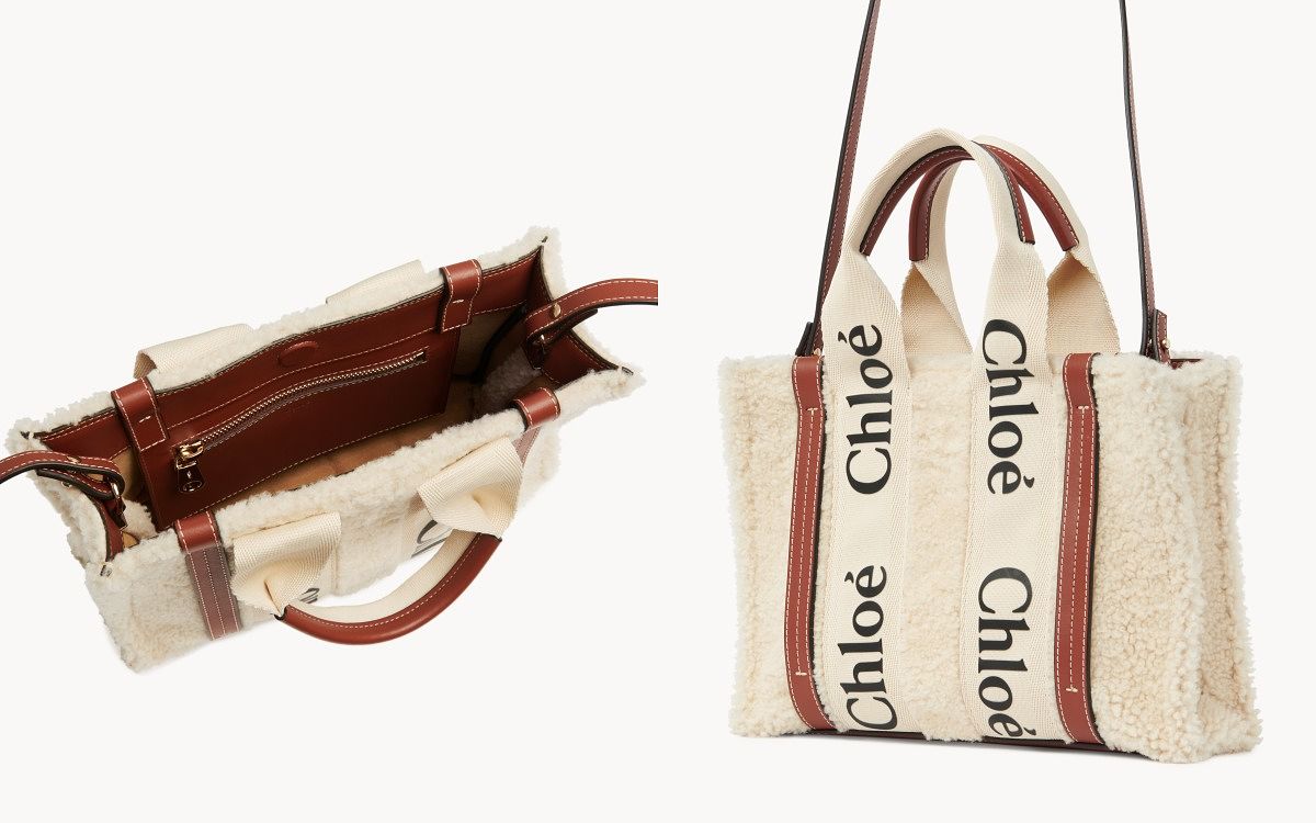 Chloé Woody托特包皆有貼心設置的扁平內袋,可以收納常用物品或卡片;新款羔羊毛系列正好適合冬季,讓軟綿療癒的材質撫慰你的心,揹著它就能帶來好心情,短羔羊毛的設計面料,其實不局限於冬季,春夏揹也沒有違和感!