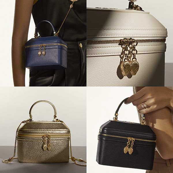 前所未見的Serpenti珠寶盒包造型令人難以抗拒,華麗且完美,不僅可放置鍾愛的珠寶,亦為 BVLGARI 的蛇形世界注入了前所未有的風格。羅馬珠寶商向 20 年代的純銀珠寶盒取經,將珠寶盒設計提升到全新境界。該款純銀珠寶盒為 Bvlgari Heritage 系列作品之一,珠寶商將這項雋永經典重新演繹為意想不到的巧思,與品牌的核心理念深刻連結。這款獨一無二的珠寶盒散發誘人吸引力,滿溢著寶格麗作為珠寶商的根源:精雕細琢的頂蓋呼應寶格麗向來善於雕琢的多面寶石,拉鍊頭和弧形鍊條肩背帶飾以令人著迷的金色傳統蛇頭。此外,還有一個難以察覺的巧妙設計,盒子底部有秘密收納層,方便保管最貴重的珍寶。