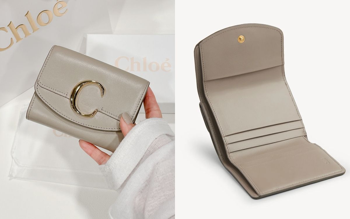 Chloé C系列的皮件價格幾乎落在一萬多的親民價格,正面點綴著金色搶眼「C」字母,看起來簡潔又耐看,這款短夾式採用正反面開闔的設計,背面打開是寬敞的零錢夾,最耐看入門款非它莫屬!