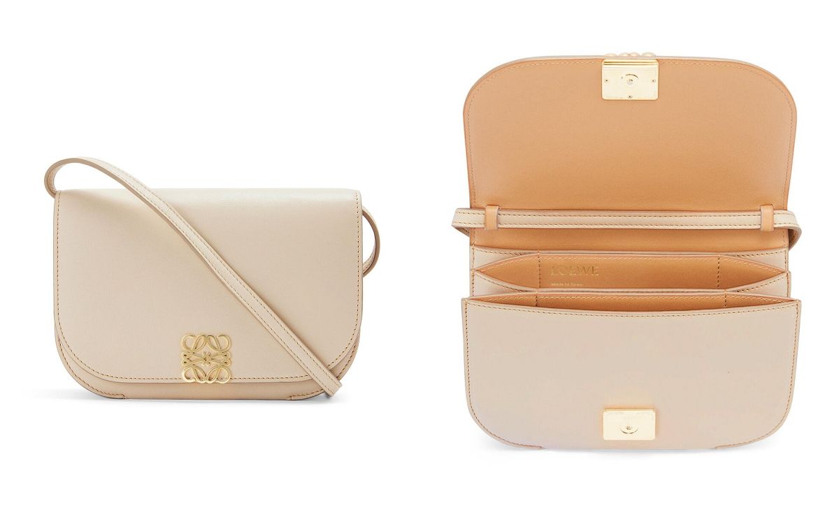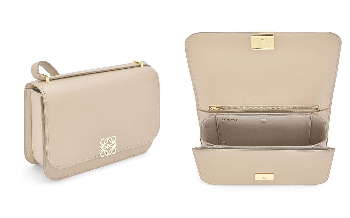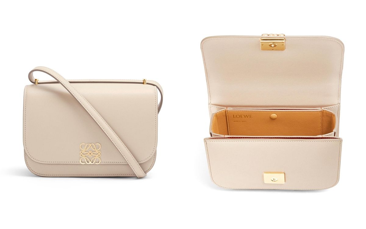 LOEWE Goya包款於2021秋冬推出後,旋即成為品牌熱銷新經典包!Goya包系列,以簡潔的設計與方正的造型為主要印象,點綴精緻Anagram標誌磁石扣,俐落呈現經典元素,材質方面以小牛皮縫製,搭配柔軟羊皮襯裡,搭配夢幻絕美的色系,成為2022年女孩們許願想收藏的精品包!
