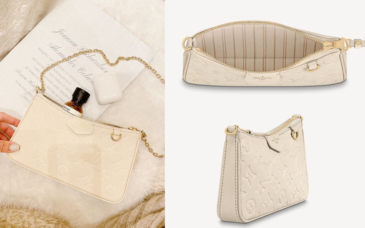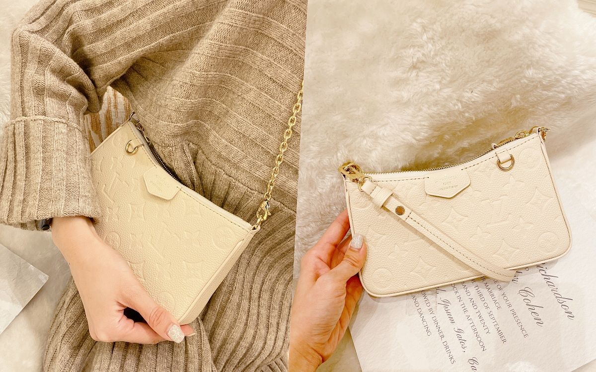 LV經典老花已經成為品牌最具識別度的代名詞,質感細膩溫柔的Monogram Empreinte皮革,將品牌老花以更為精緻的樣貌詮釋,這款官網新上架的Easy Pouch On Strap以溫潤奶油色縈繞,絕對值得收藏。