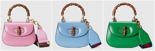 新設計的竹節包款以可替換皮革揹帶與織帶條紋揹帶為特色,為不同尺寸、色調豐富而生動的精緻包身增添新潮外觀。