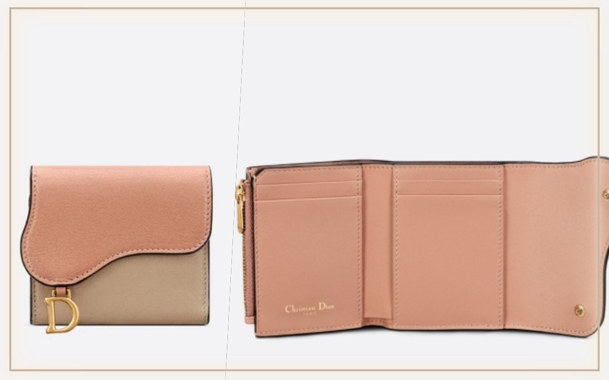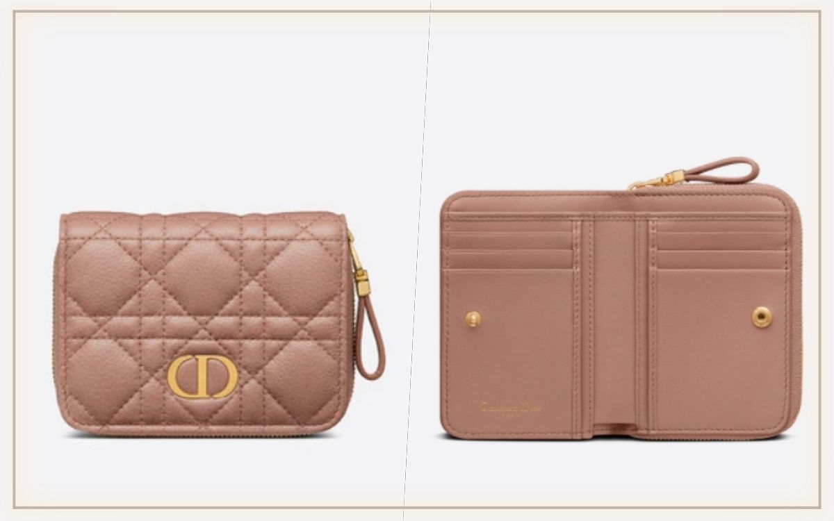 收藏Dior小皮件,除了老花之外,鎖定SADDLE LOTUS錢包、與近幾季推出以藤格紋經典元素設計的Caro小型拉鍊錢包都很有識別度、柔潤粉奶茶色更是典雅細緻,無一處不彰顯專屬Dior的出眾氣質。